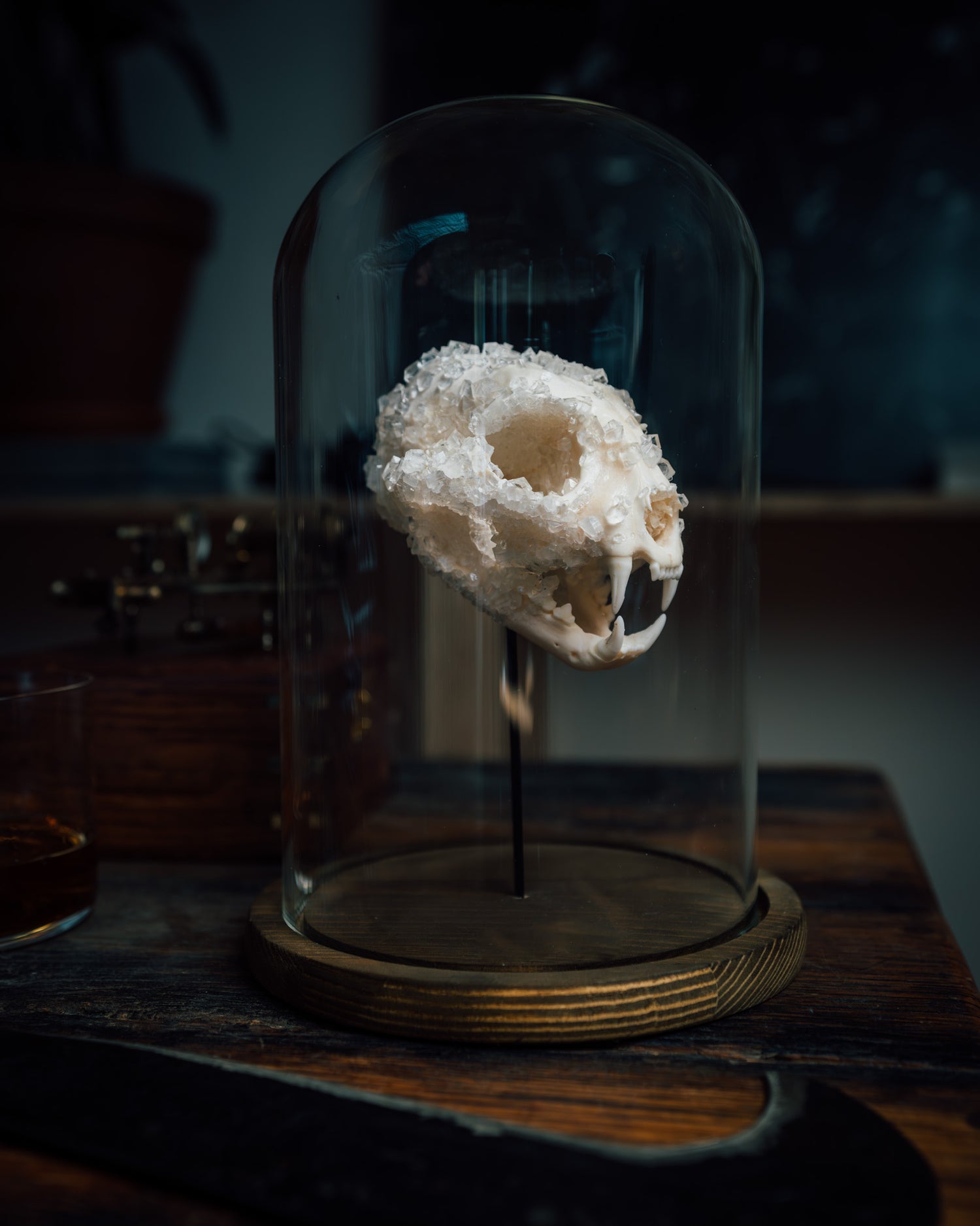 Inspired by the crystal skull found in the Black Hole of Belize during an expedition on Fearless & Far, this art piece is unique and handmade with mysterious origins.
