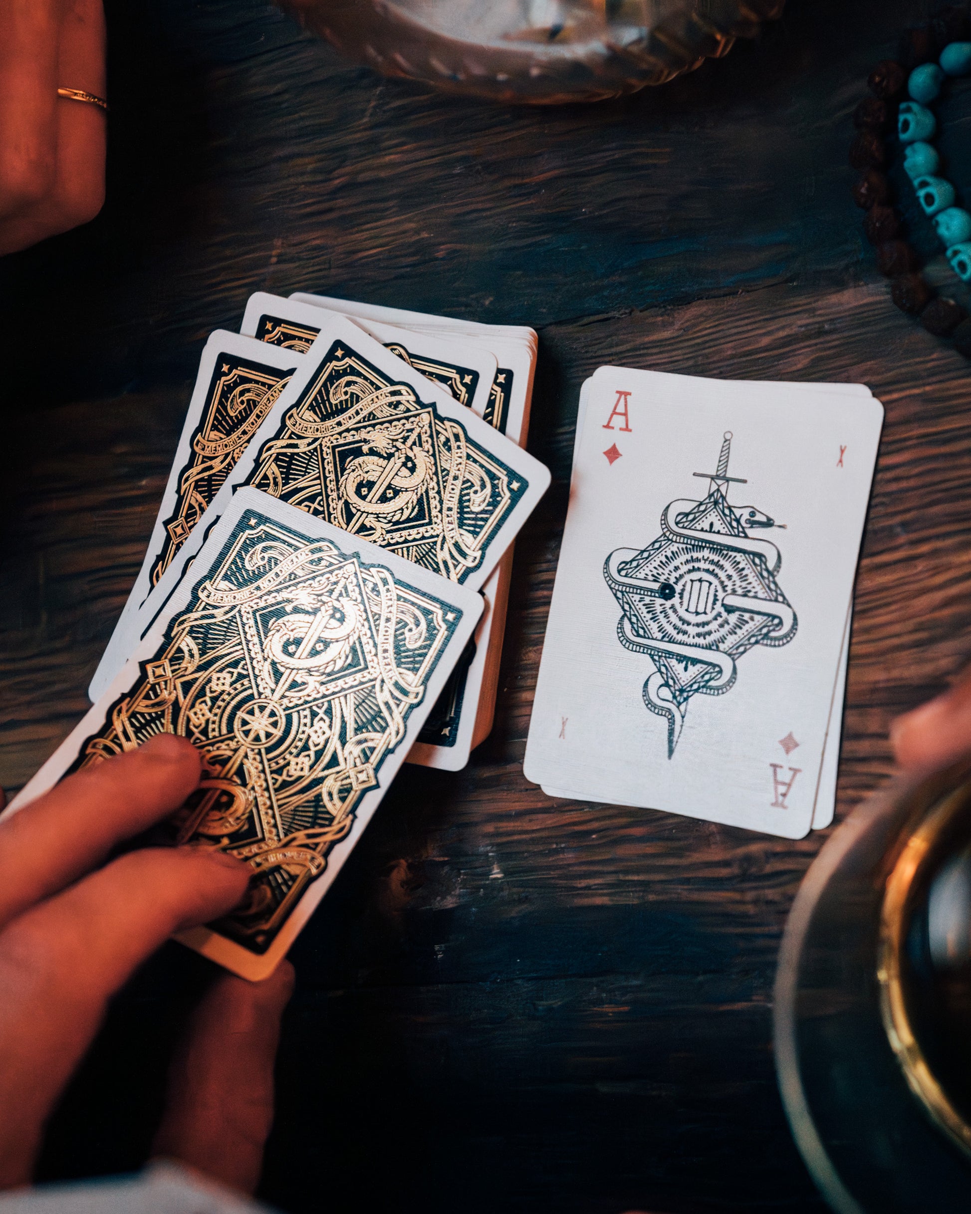These cards, rugged and rustic in appearance, are crafted to withstand the rigors of your journeys, whether you’re deep in the wilderness or on an urban escapade. Encased in a durable leather case, this deck is more than just a game; it's a testament to your adventurous soul. Elevate your adventures with a deck that’s as bold and enduring as you are.