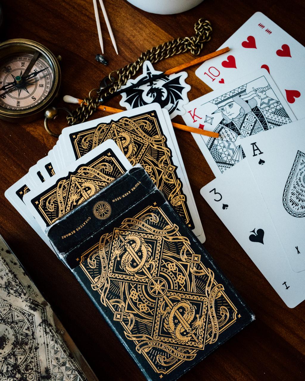 Unveil the spirit of adventure with this exclusive deck, designed for those who live life on the edge. Each card features a striking black and gold foil back, emblazoned with the inspiring words "Memories, Not dreams," and “Chase Your Fears” (The Mottos of Fearless & Far) as a reminder to seize each moment in your life.